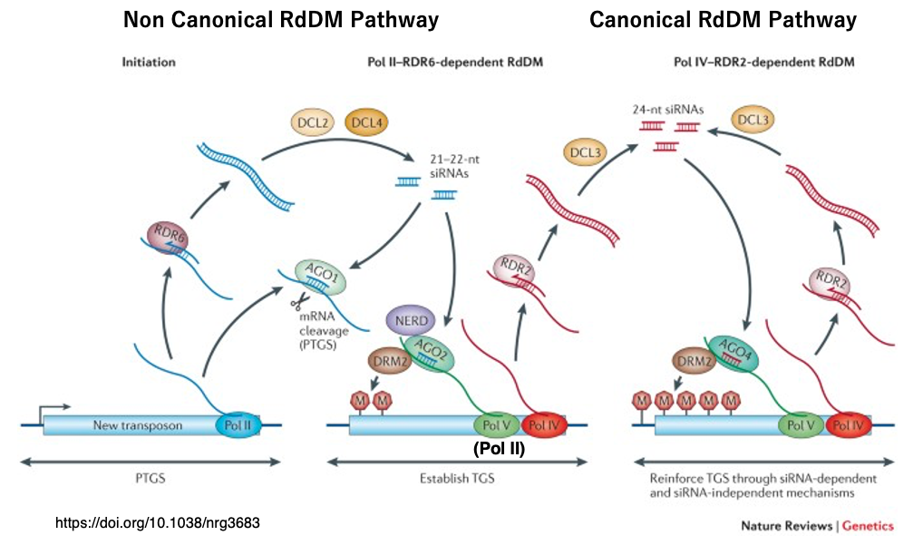 Key Words: transposon, H3K9me2, siRNA, Pol II, Pol IV, Pol V, 5mC, double-stranded RNA (dsRNA), non-canonical RdDM, DRM2, MET1, CMT3, CMT2