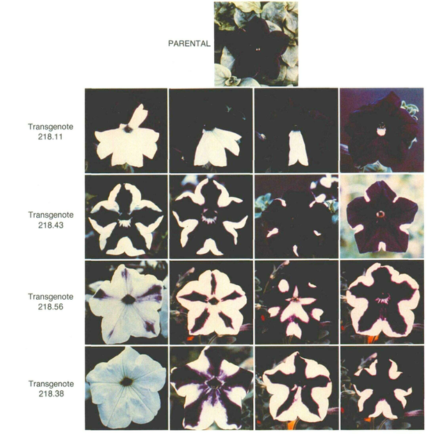 In the white regions, mRNAs derived from both the transgene and the endogenous CHS gene were markedly reduced, showing that transcription of both sequences was silenced. This phenomenon was termed co-suppression.