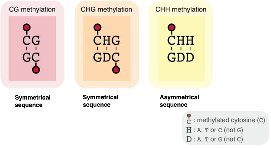 While CG and CHG sites are symmetrical when considering double-stranded DNA, CHH sites are asymmetric.